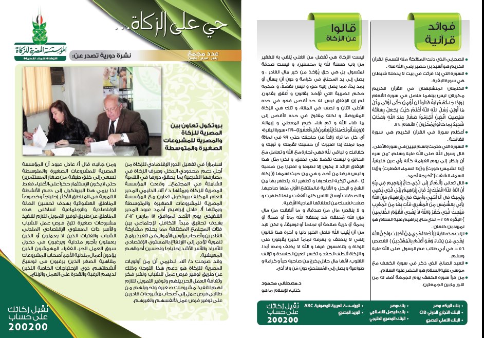 قامت مؤسسة الزكاة مشكورة بتقديم منحة للمؤسسة قيمتها 2 مليون جم لدعم جهود المؤسسة فى مجال توفير فرص عمل للشباب بالإضافة إلى (1) مليون جم قيمة مساهمتها فى رأس مال المؤسسة